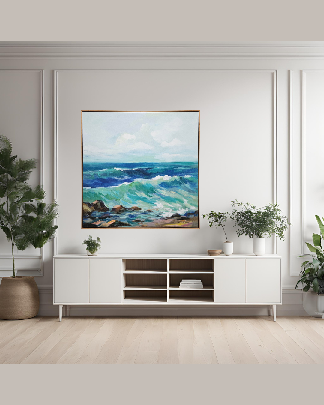 Premium Giclee print on Canvas, framed with a hardwood natural oak frame.